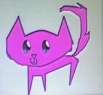 completly pink with a flower on her forhead and purple eyes