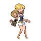 Description: She has blonde hair with blonde highlights. Unusual green-blue eyes that seem to shine with their own light. She wears a purple tank top and white shorts. Amiee carries around her two pokeballs in her brown handbag, and her Buneary sits on her head.