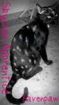 Appearance: A slick, black she-cat with peircing blue eyes. She has a gray paw, and a gray line going down her tail. She has short fur and she's lean and tall, with muscles in her arms and legs.